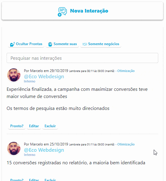 - Você pode opcionalmente marcar avisar por e-mail para enfatizar e facilitar ainda mais a visualização da interação.