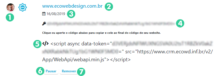 - Token de validação do website. Não divulgue essa chave