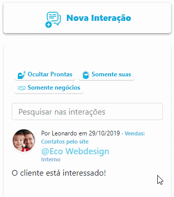 → Veja como delegar interações para alguém da sua equipe também participar